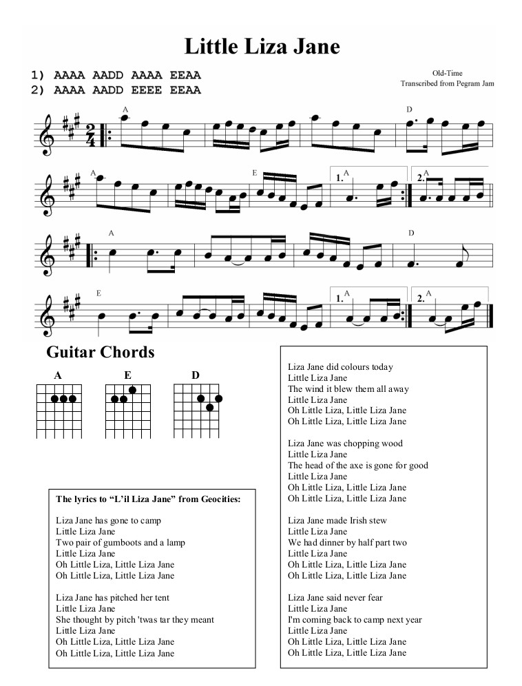 Old Mother Flanagan[Ozarks / Appalachian tune tune, G or A, goes with Liza Jane ][Possibly derived from Irish] Sometimes AEAE